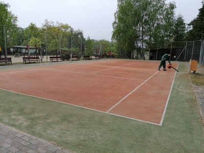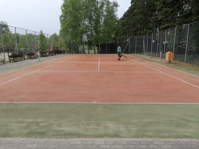 Kort tenisowy i boisko do siatkówki plażowej
